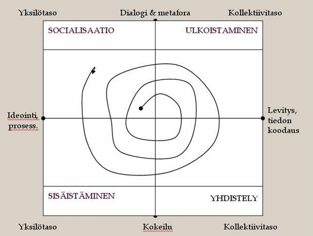 Hiljaisen tiedon muuntoprosessin onnistuminen edellyttää Nonakan mukaan aitoa kehittämispyrkimystä, riittävää toimijoiden autonomiaa, organisatorista ja toiminnallista vaihtelua sekä satunnaisuuden ja monimuotoisuuden kaaottisuutta. (Nonaka 1997) Käytännössä työyhteisöltä vaaditaan jonkinasteista tiimiorganisaatiota, muuten Nonakan ehdot tuskin toteutuvat. Riittävän itseohjautuva tiimi tarvitaan, jotta yksityinen hiljainen tieto voidaan jakaa ja vahvistaa. Sosialisaation avulla saavutettu hiljainen tieto voidaan sitten ulkoistaa julkiseksi. Julkinen tieto voidaan seuraavaksi sisäistää tuotteeksi tai systeemiksi (internalisaatio). Tiimistä käynnistyy myös uusien käsitteiden legitimaatio (oikeuttaminen) ja integroiminen organisaation uudeksi pääomaksi.