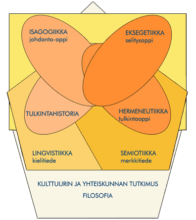 - eksegetiikalla (selitysopilla) tekstin alkuperäisiin sosiaalisiin konteksteihin kytkeytyneiden merkitysten tutkimista,