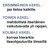 - Siirtyminen yksintekemisestä yhdessätekemiseen.