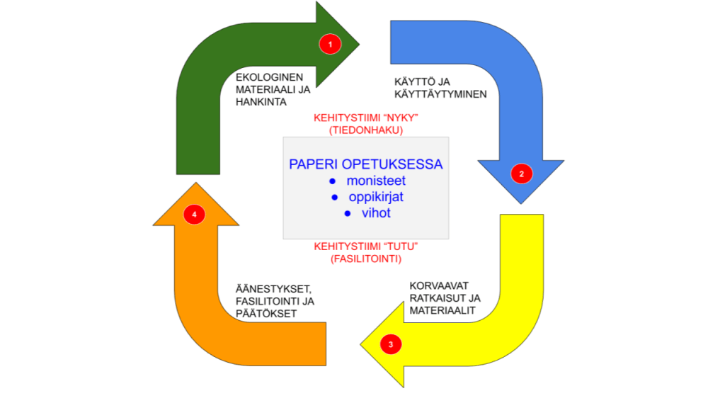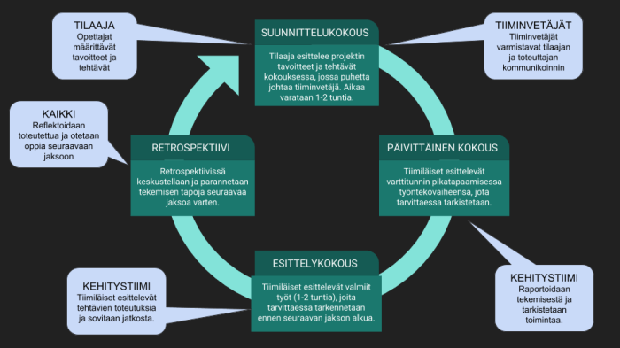 - TIIMITYÖ: opitaan – suunnitellaan, kommunikoidaan, arvioidaan ja esitetään – yhdessä mutta toteutetaan työnjakoisesti