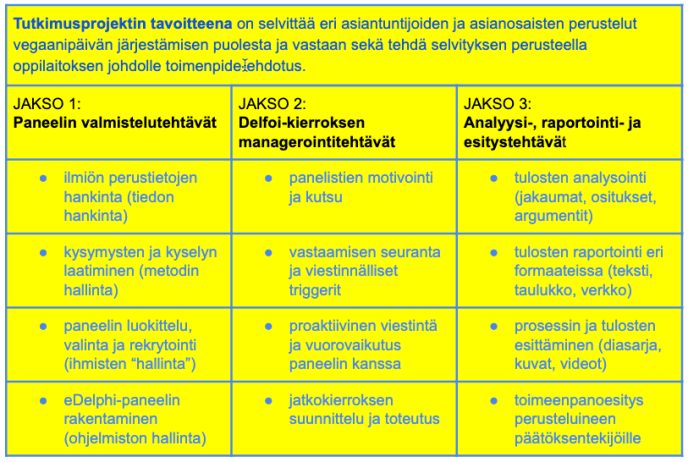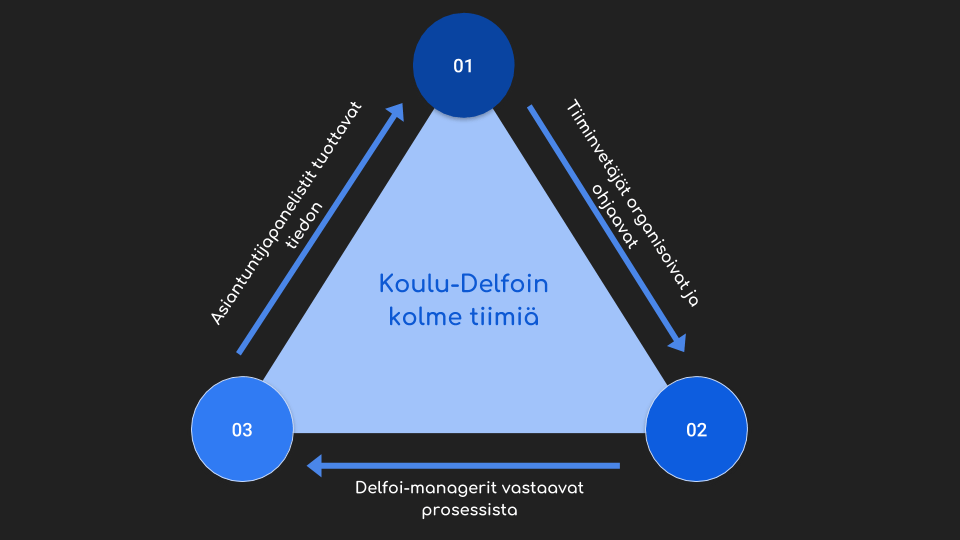 Panelisteja pyydetään ensinnä vastaamaan kysymyksiin, mutta se on vasta alku. Vastaukset avataan sen jälkeen reaaliaikaisesti muiden näkyville ja mahdollistetaan toisten vastausten kommentointi ja dialogi. Keskustelun perusteella osa panelisteista muuttaa prosessin eli Delfoi-kierroksen myötä alkuperäistä vastaustaan. Optimaalisessa Delfoi-prosessissa toteutuvat kaikki neljä Rajalan (2016) esittämää toimijuuskeskeisen pedagogiikan periaatetta: (1) opetus perustuu oppilaiden henkilökohtaiselle mielekkyydelle ja toimijuudelle, (2) opetus yhdistyy koulun ulkopuolisiin toimintajärjestelmiin ja asiantuntijayhteisöihin, (3) opetus sovitetaan koulukontekstin tarjoamiin mahdollisuuksiin, ja (4) pedagogiikka ja oppiminen mielletään jatkuvana matkana.