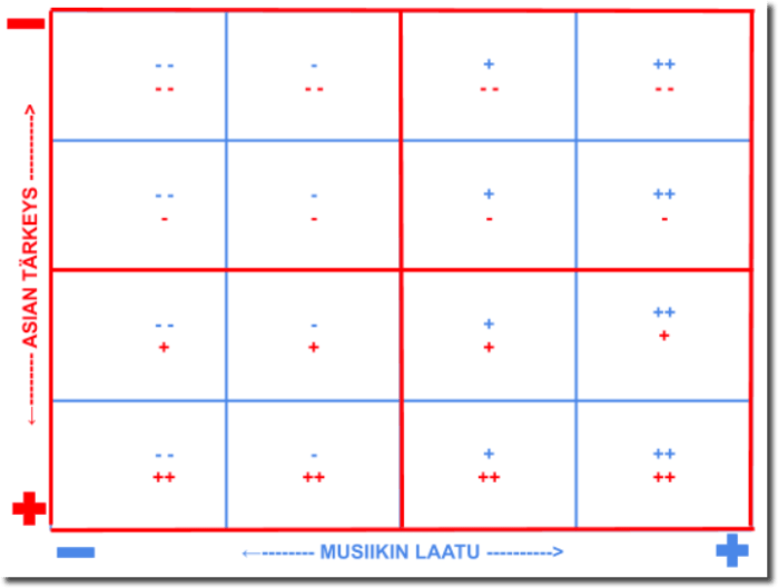 Äänestämiseen tarvitaan yhden tai kahden suunnan äänestysalue yllä olevan kuvan mallin mukaan. Sivu- eli leveyssuunnassa ilmaistaan esimerkiksi oma kanta puolesta tai vastaan, ja syvyyssuunnassa arvioidaan se, kuinka merkityksellisenä (tärkeänä) aihetta pitää. Äänestyskriteerit muuttuvat kysymysten mukana, mutta näillä kahdella aloitetaan. Äänestysalue on tavallaan koordinaatisto, jossa jokaiselle pisteelle on annettavissa jollain tarkkuudella matemaattinen arvo. Jos äänestystilan leveys ja pituus on 8 metriä niin metrin välistyksellä molempien asteikkojen mitta on kahdeksan. Koordinaatisto mahdollistaa laskennan ja tilauksen ääntenlaskijoille, jotka äänestystuloksen lisäksi voivat laskea esimerkiksi keskiarvon ja keskihajonnan, jos ollaan jo tarpeeksi korkealla luokka-asteella. Asetelma tarjoaa lukuisia mahdollisuuksia Varga-Neményi-menetelmän käyttöön, kun hahmotellaan äänestyssuhteita ja niiden muutoksia. (Vaattovaara 2019)