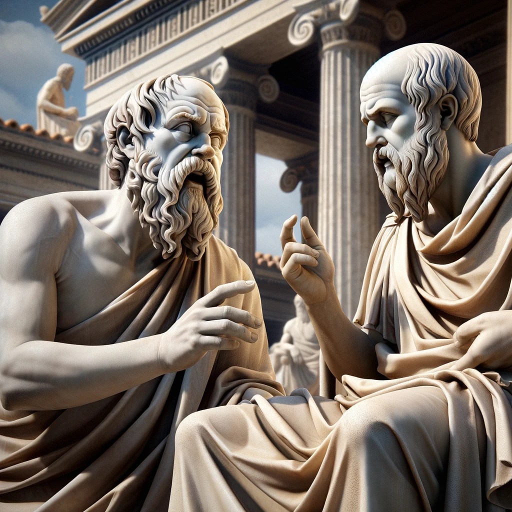 Platon ja Aristoteles asettuivat vastustamaan sofistien opportunista oppia. Platonin mukaan filosofia ja retoriikka suhtautuvat toisiinsa kuin penisilliini ja huulipuna. Lääke keskittyy potilaan parantamiseen, ja kosmetiikka siihen, miltä potilas näyttää. Platon nosti filosofian ytimeen huulipunan sijaan dialektiikan, jossa totuus voidaan löytää kysymysten ja vastausten avulla. Aristotoles rakensi synteesiä dialektiikan ja retoriikan välille tarjoamalla molemmille oikeutuksen. Platonin tavoin hän asetti etusijalle dialektiset menetelmät, jotka olivat tarpeen totuuden löytämiseksi, mutta hyödyllisiä olivat myös retoriset osaamiset, kun niiden avulla saadaan todellisuus ja totuus kaikkien ulottuville.
